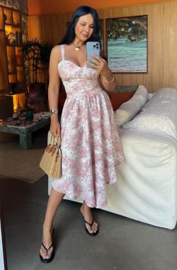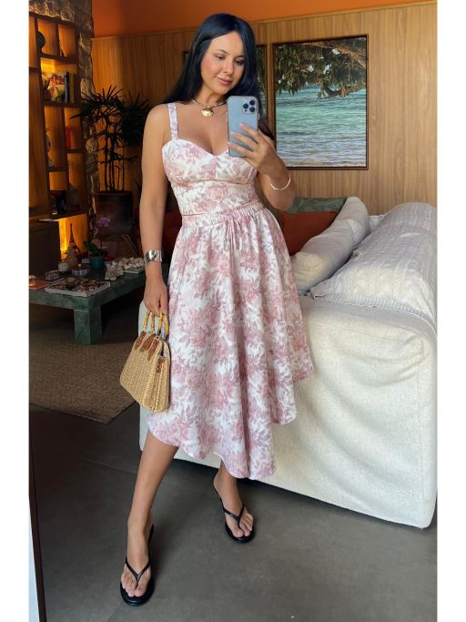 Saia Flora, uma fluidez incrível nessa viscose estampada de cair o queixo! Olha os elementos da estampa, até cajuzinho tem, demais né.